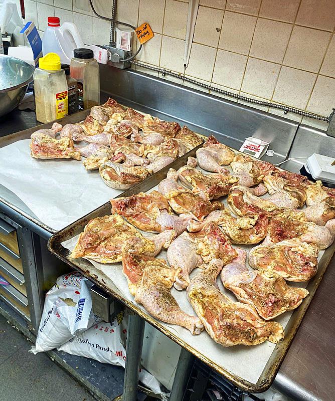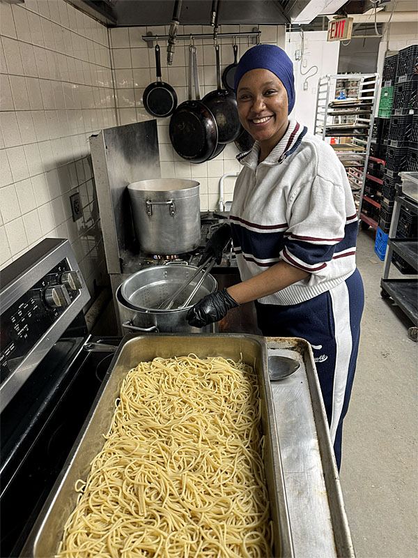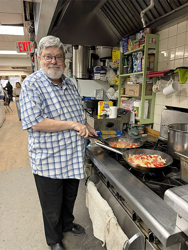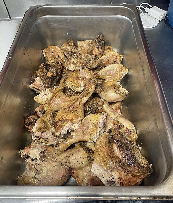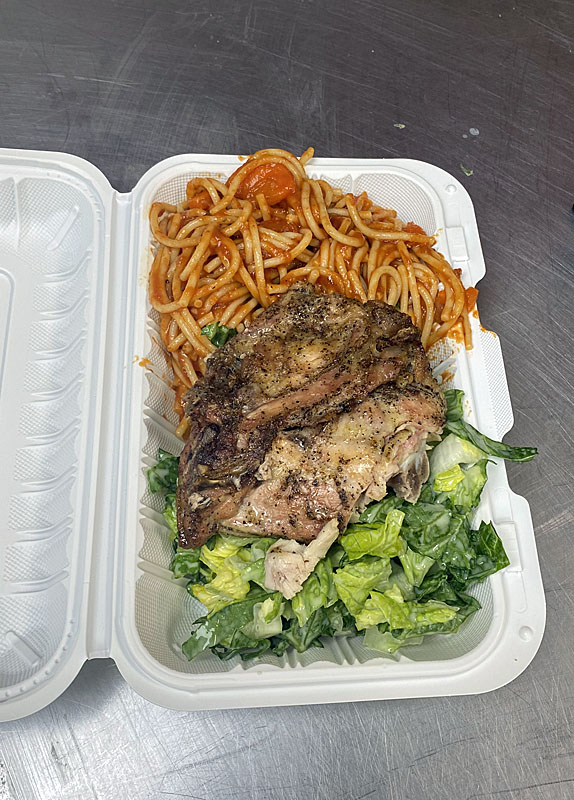 Part of the fun is that we never know when we arrive what food we will have - and a big thanks to all our food donors! - so we plan menus on the spot. Today we were able to offer hot roast chicken, hot pasta with fresh veggies and tomato sauce, and salad.
